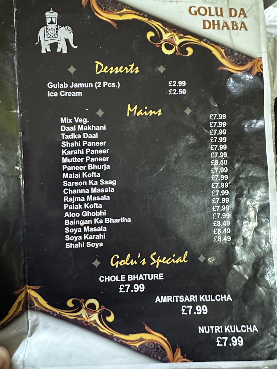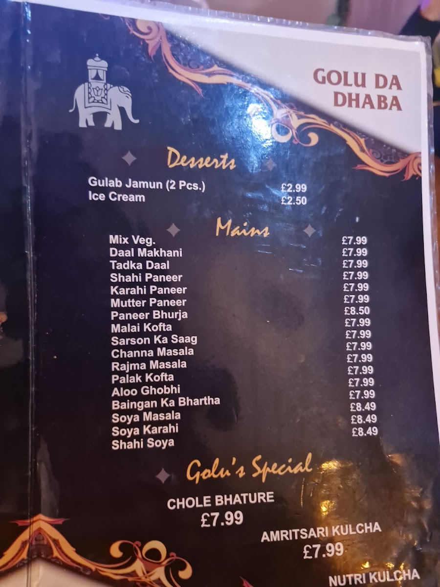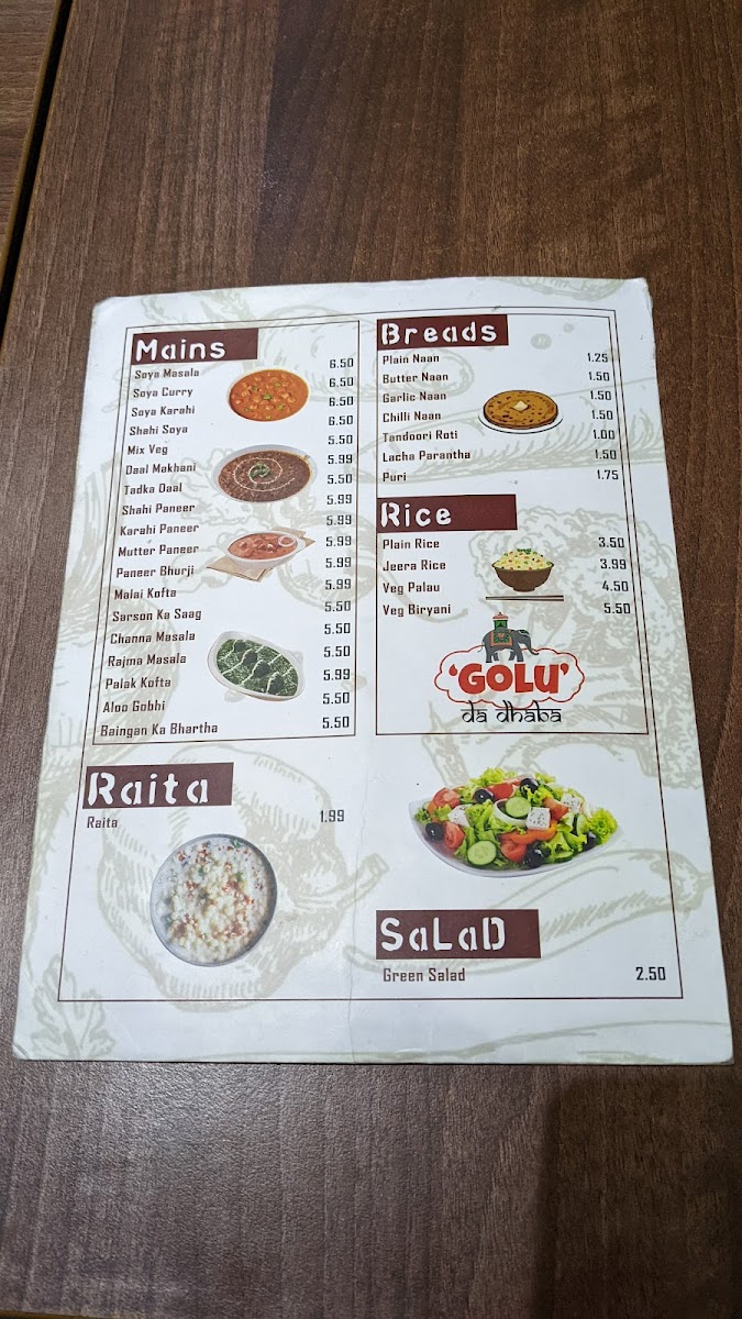 Golu Da Dhaba, located at 160 Rolfe St, Smethwick B66 2AU, is a hidden gem for those seeking an authentic and vibrant Indian dining experience. This restaurant offers a menu bursting with rich, aromatic flavors that perfectly represent the diversity of Indian cuisine. The Golu Da Dhaba Menu is extensive, with a variety of traditional dishes that cater to both vegetarian and non-vegetarian tastes. From spicy curries to flavorful biryanis, every dish is prepared with fresh ingredients and a depth of seasoning that will transport your taste buds straight to India.